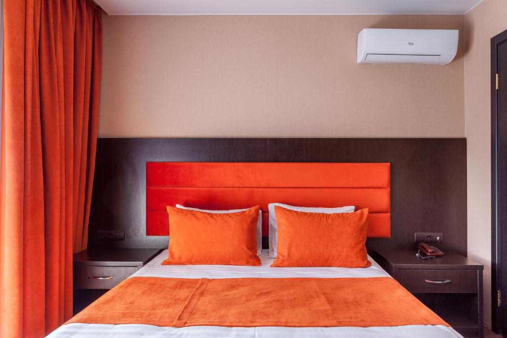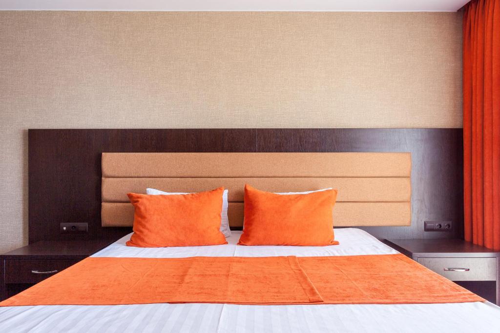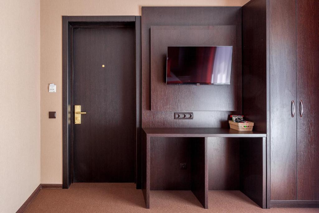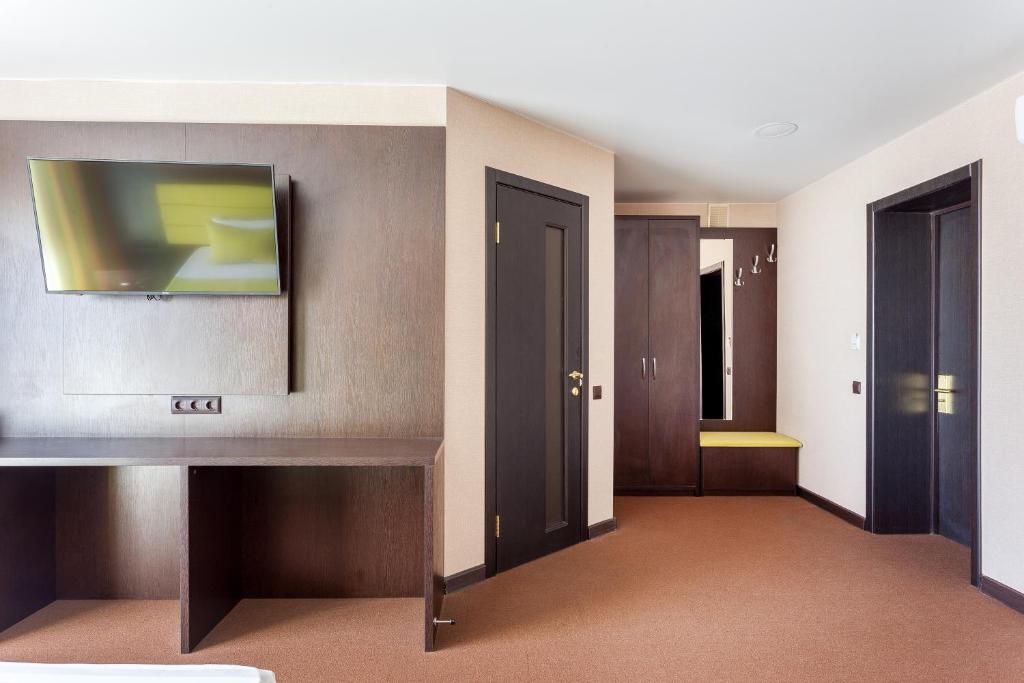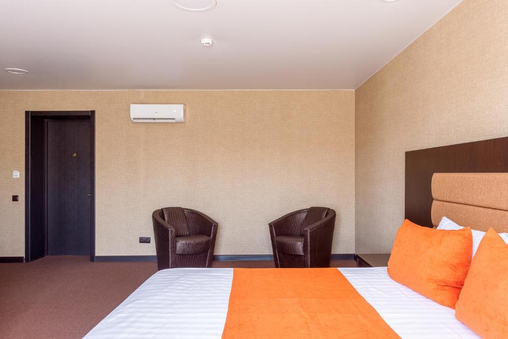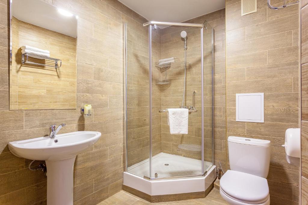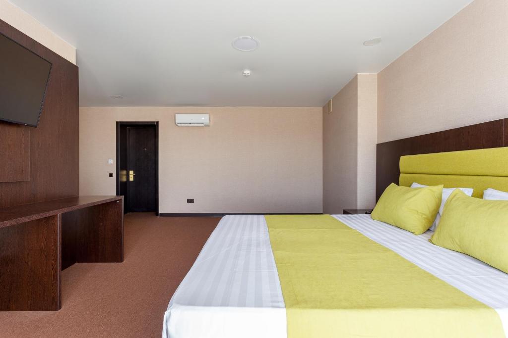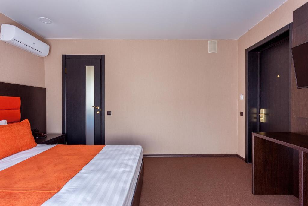 «Стандарты» 16 кв.м. оборудованы новой мебелью, здесь установлены двуспальные кровати с ортопедическими матрасами, есть телевизор, холодильник с мини-баром, санузел с чистой новой душевой кабиной, банными принадлежностями.